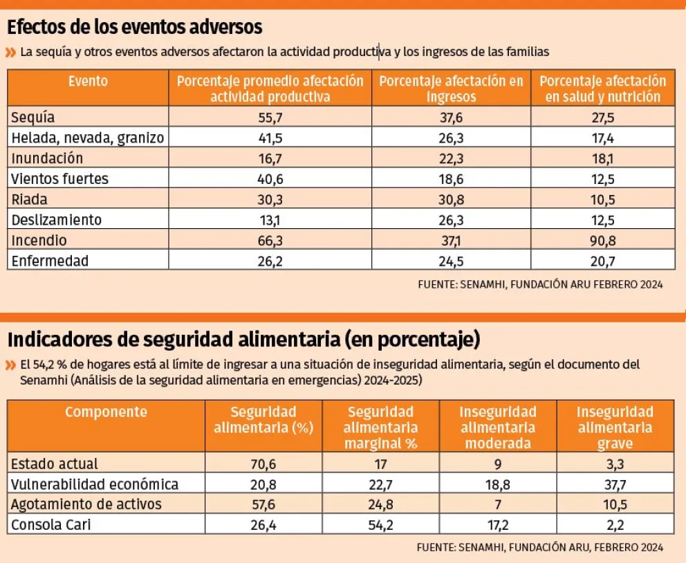 The study states that the aforementioned adverse events jeopardize the food security of households, especially affecting the most vulnerable populations such as children and the elderly.