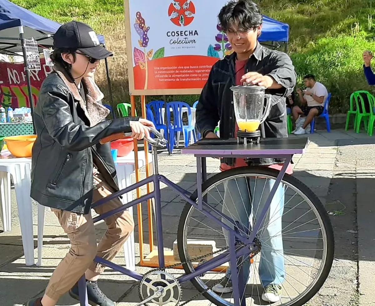 La licuacleta, una curiosa máquina que guarda la forma de una bicicleta, pero dirige el impulso de los pedales a mover las aspas de una licuadora, no solo promueve la actividad física y la reducción del uso de energía eléctrica, sino que permite disfrutar de un jugo fresco de frutas o verduras.