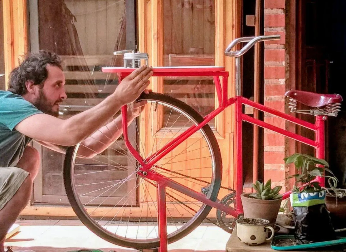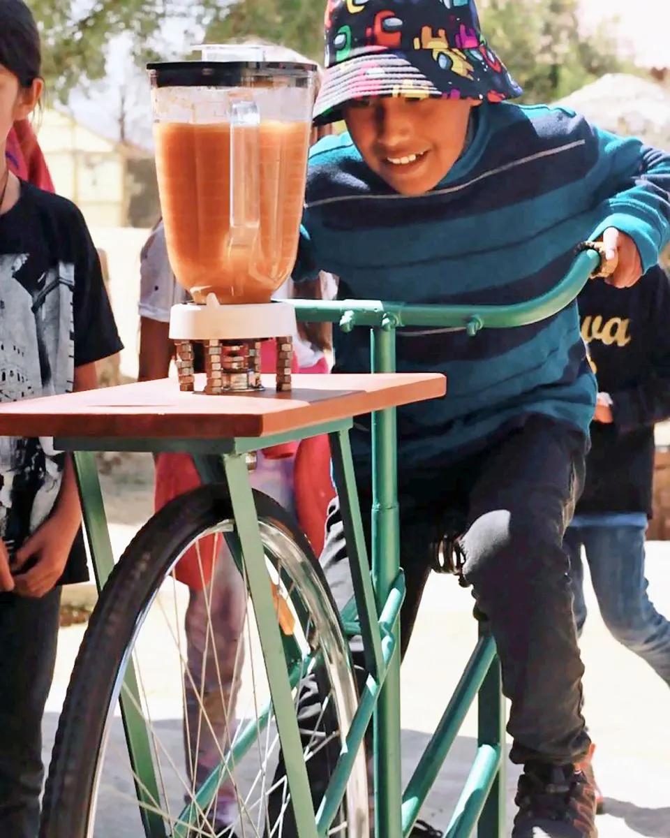 “Por ahí, una licuadora no es algo tan útil, ¿no? En el área rural, por ejemplo, un lugar de difícil acceso de electricidad, una licuadora no es un electrodoméstico de necesidad básica como puede ser, no sé, una bomba de agua. Porque, a veces, sí tenés que sacar agua de un pozo, de un río, para un riego o algo así; para eso se necesita una bomba o invertir en un panel solar. Pero lo lindo de las licuadoras es que despiertan mucha curiosidad y como que rompen un poco las estructuras de lo establecido, cuando alguien ve una bicicleta y de repente está haciendo un jugo con ella”, dice.