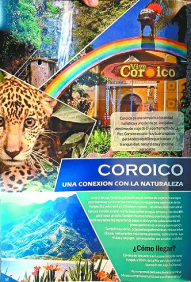 “In this section, readers can find places to visit, such as Valle de la Luna, Huayna Potosí, or the city of Coroico. It also covers city attractions like viewpoints, the different Mi Teleférico lines, plazas, and well-known streets,” explained the editor.